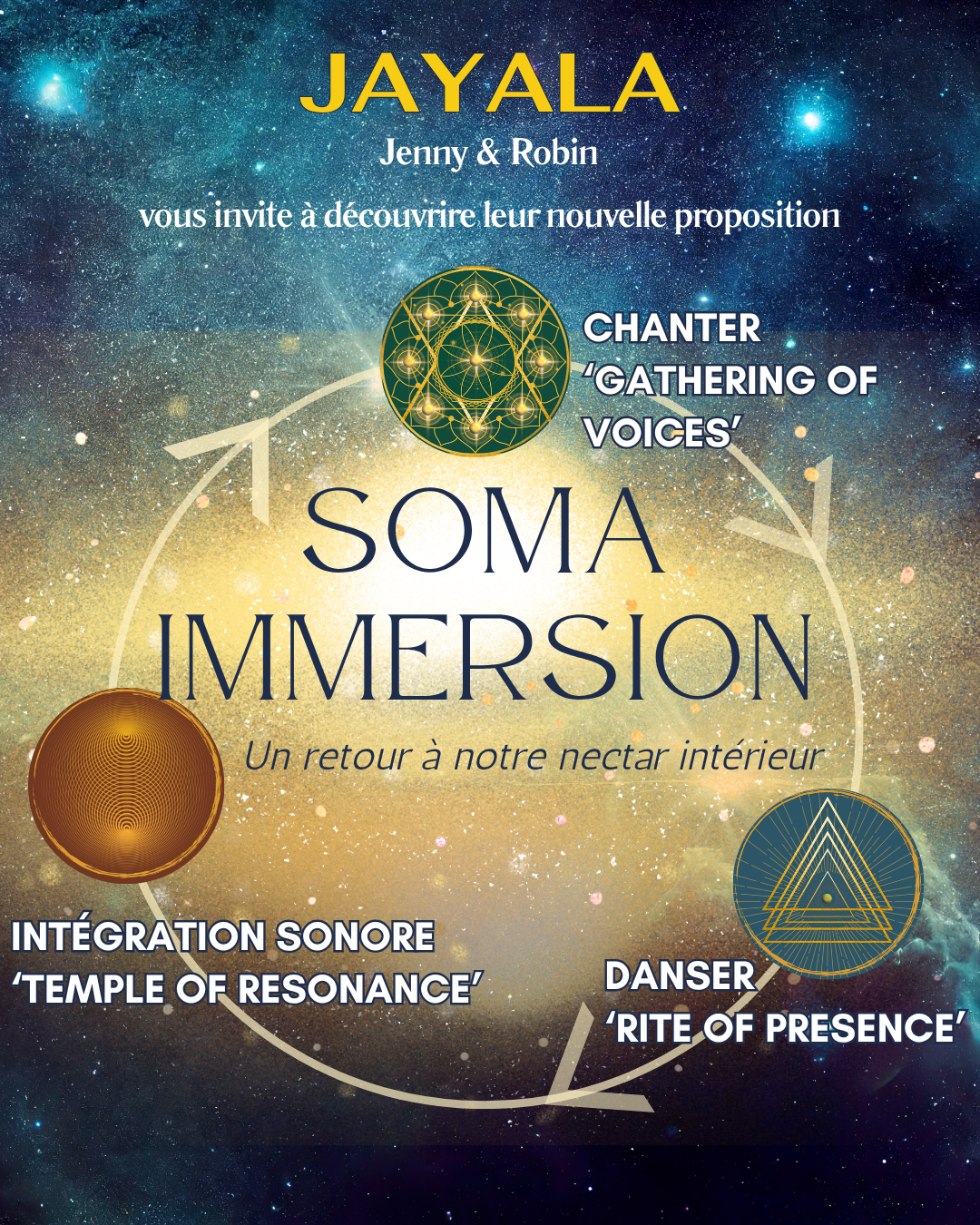 Avec ‘Soma Immersion’ nous vous proposons un voyage collectif à travers la voix, le corps et le son, une invitation à revenir à la présence par la vibration.